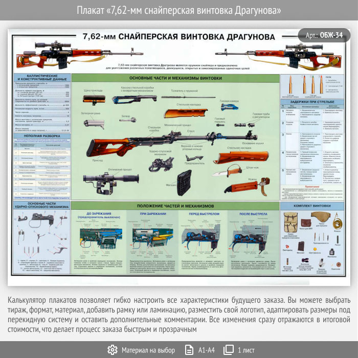 Плакат «7,62-мм снайперская винтовка Драгунова» (ОБЖ-34, 1 лист) в Великом Новгороде купить