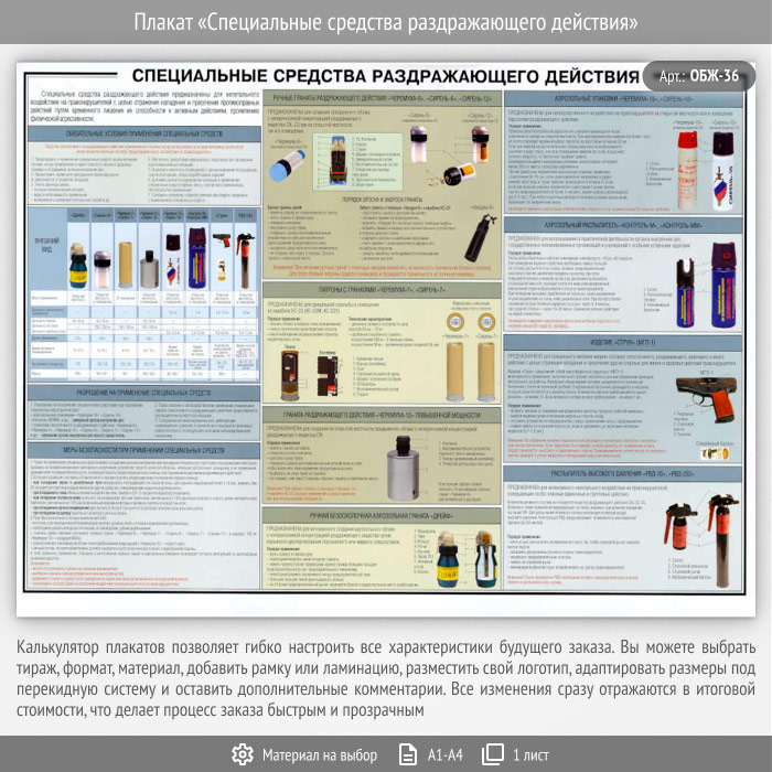 Плакат «Специальные средства раздражающего действия» (ОБЖ-36, 1 лист) в Великом Новгороде купить