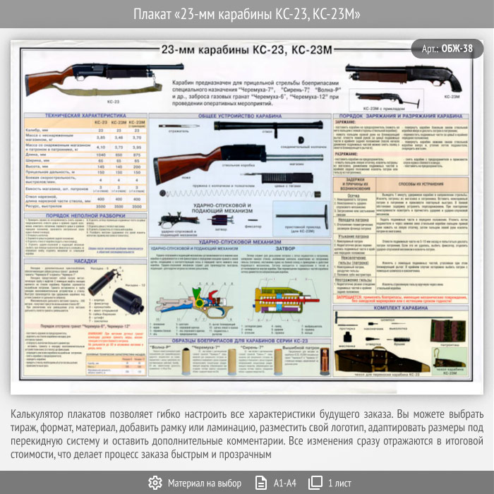 Плакат «23-мм карабины КС-23, КС-23М» (ОБЖ-38, 1 лист) в Великом Новгороде купить