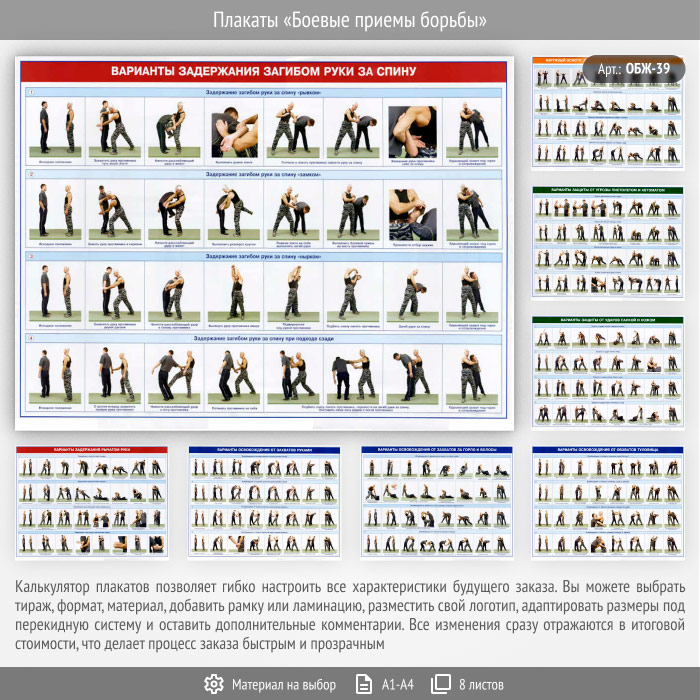 Плакаты «Боевые приемы борьбы» (ОБЖ-39, 8 листа) в Великом Новгороде купить