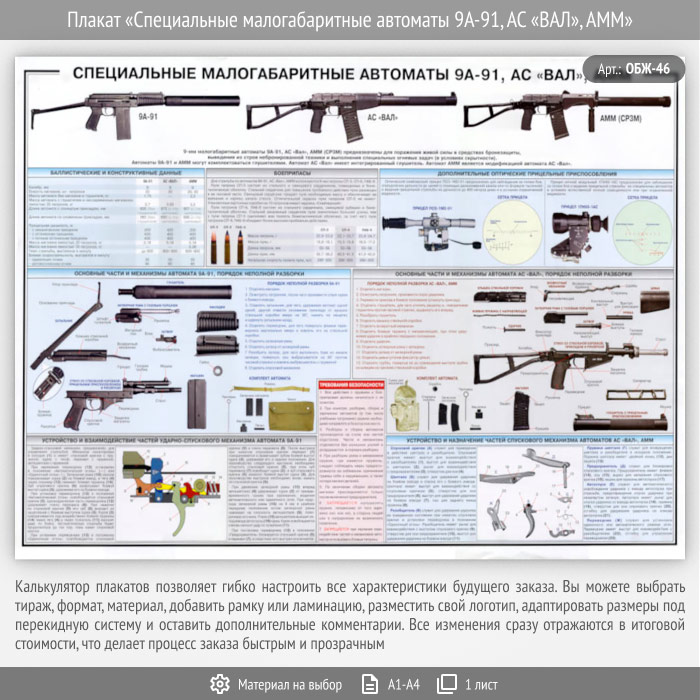 Плакат «Специальные малогабаритные автоматы 9А-91, АС «ВАЛ», АММ» (ОБЖ-46, 1 лист) в Великом Новгороде купить