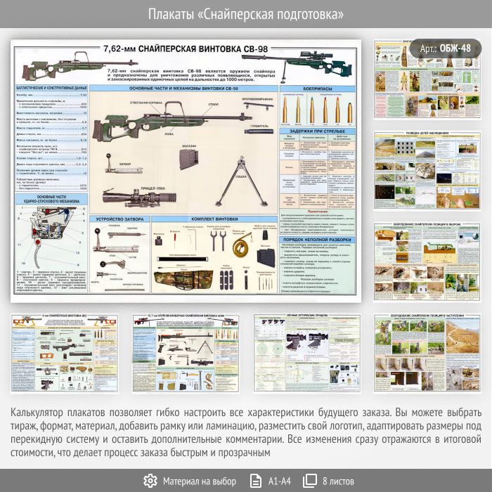 Плакаты «Снайперская подготовка» (ОБЖ-48, 8 листа) в Великом Новгороде купить