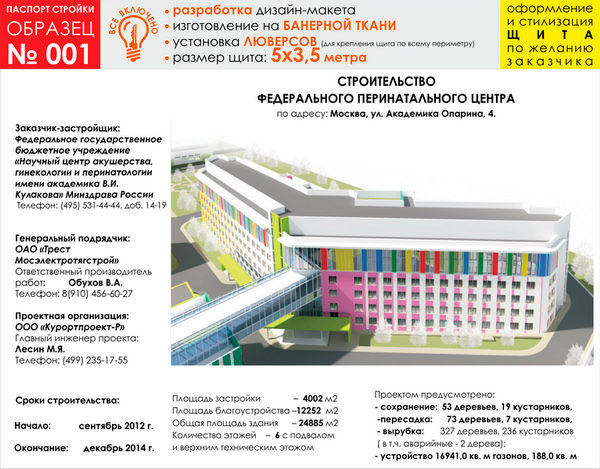 Паспорт стройки, образец № 1 (баннерная ткань, 5000х3500 cм) в Великом Новгороде купить
