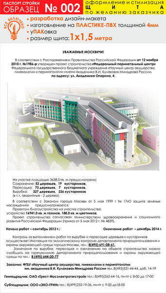 Паспорт стройки, образец № 2 (пластик 4 мм, 1000х1500 cм) в Великом Новгороде купить