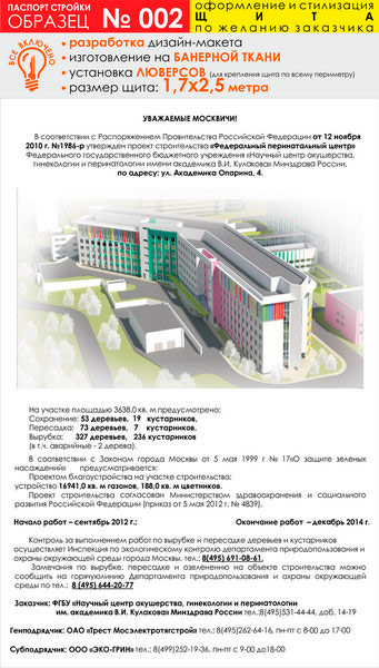Паспорт стройки, образец № 2 (баннерная ткань, 1700х2500 см) в Великом Новгороде купить