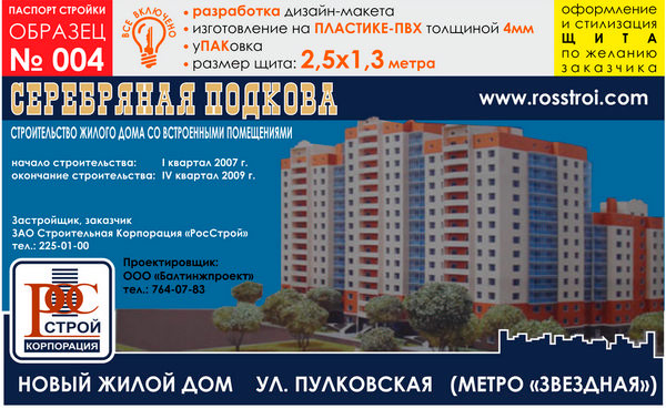 Паспорт стройки, образец № 4 (пластик 4 мм, 2500х1300 cм) в Великом Новгороде купить