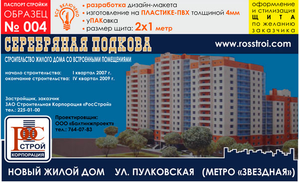 Паспорт стройки, образец № 4 (пластик 4 мм, 2000х1000 cм) в Великом Новгороде купить