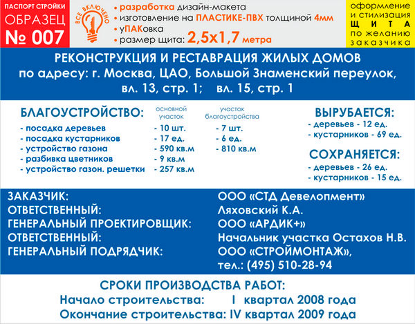 Паспорт стройки, образец № 7 (пластик 4 мм, 2500х1700 cм) в Великом Новгороде купить