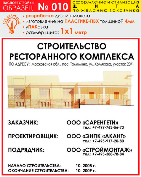 Паспорт стройки, образец № 10 (пластик 4 мм, 1000х1000 cм) в Великом Новгороде купить