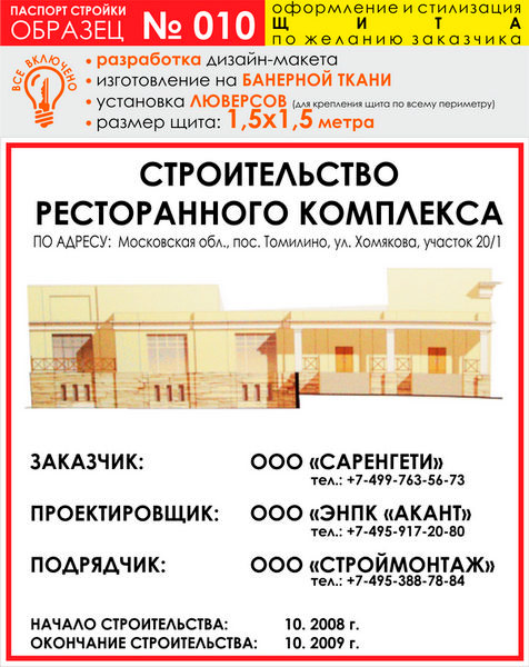 Паспорт стройки, образец № 10 (баннерная ткань, 1500х1500 cм) в Великом Новгороде купить