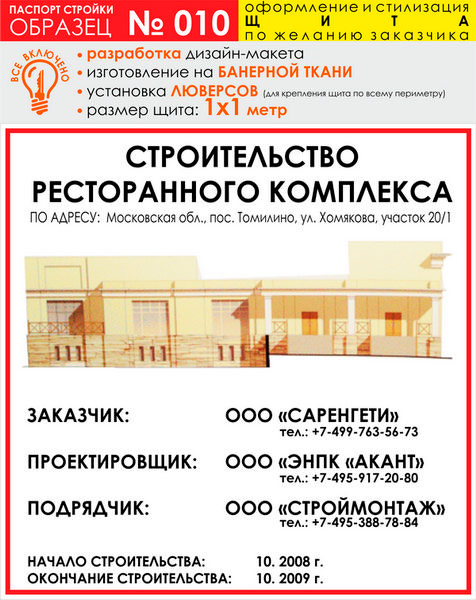 Паспорт стройки, образец № 10 (баннерная ткань, 1000х1000 cм) в Великом Новгороде купить