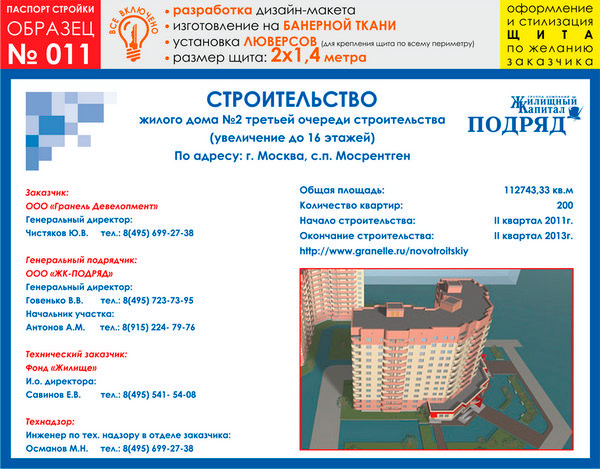 Паспорт стройки, образец № 11 (баннерная ткань, 2000х1400 cм) в Великом Новгороде купить