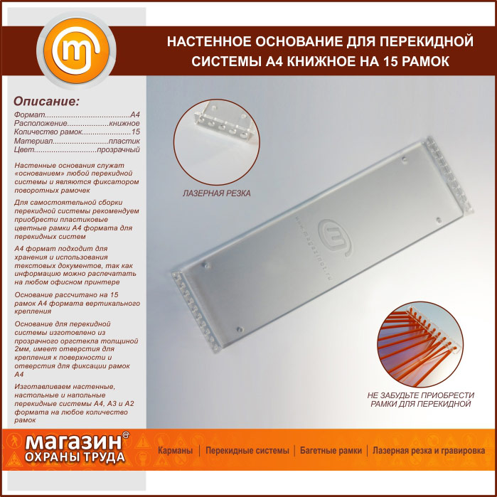 Настенное основание для перекидной системы А4 книжное на 15 рамок (оргстекло) в Великом Новгороде купить