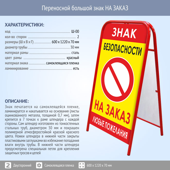 Переносной большой знак НА ЗАКАЗ (двусторонний, самоклеящаяся пленка) в Великом Новгороде купить