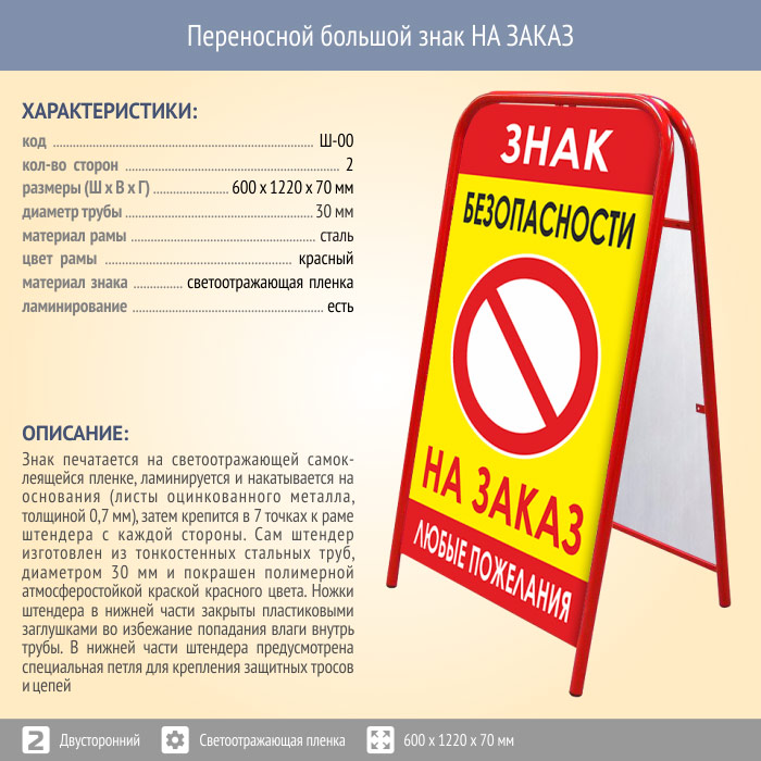 Переносной большой знак НА ЗАКАЗ (двусторонний, светоотражающая пленка) в Великом Новгороде купить