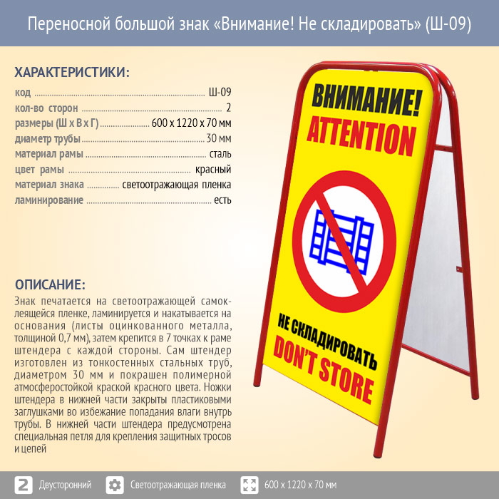Переносной большой знак «Внимание! Не складировать» (Ш-09, двусторонний, светоотражающая пленка) в Великом Новгороде купить