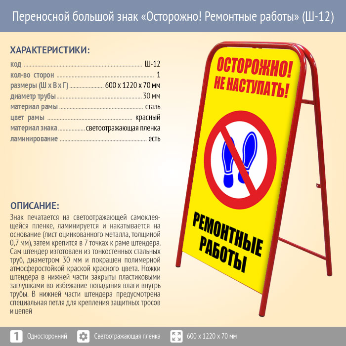 Переносной большой знак «Осторожно! Ремонтные работы» (Ш-12, односторонний, светоотражающая пленка) в Великом Новгороде купить