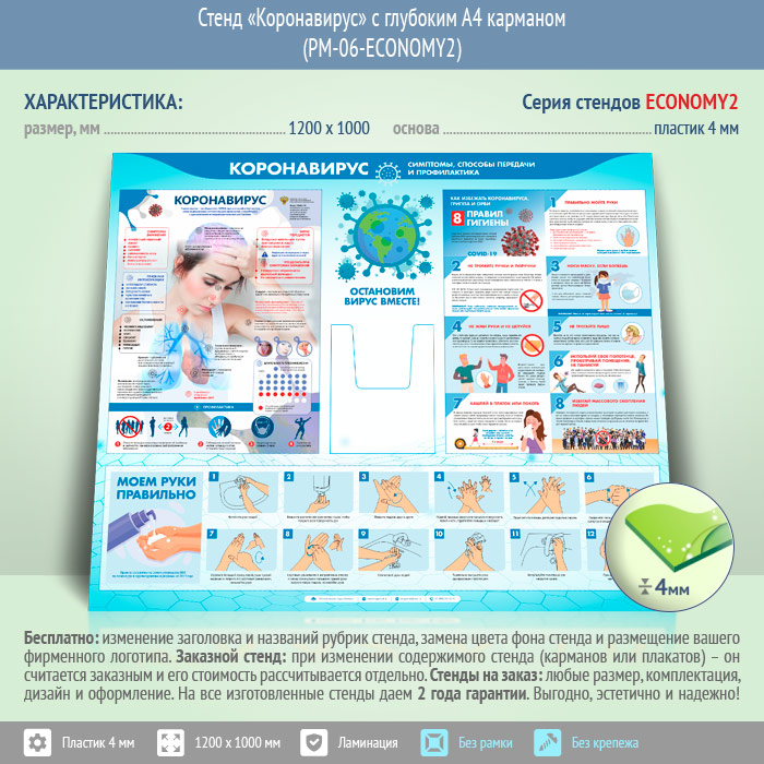 Стенд «Коронавирус» с глубоким А4 карманом (PM-06-ECONOMY2) в Великом Новгороде купить