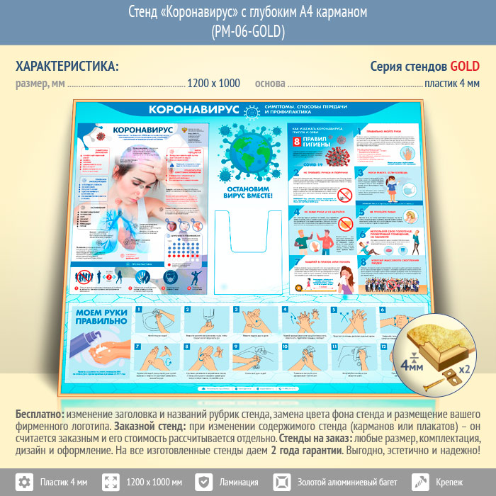 Стенд «Коронавирус» с глубоким А4 карманом (PM-06-GOLD) в Великом Новгороде купить