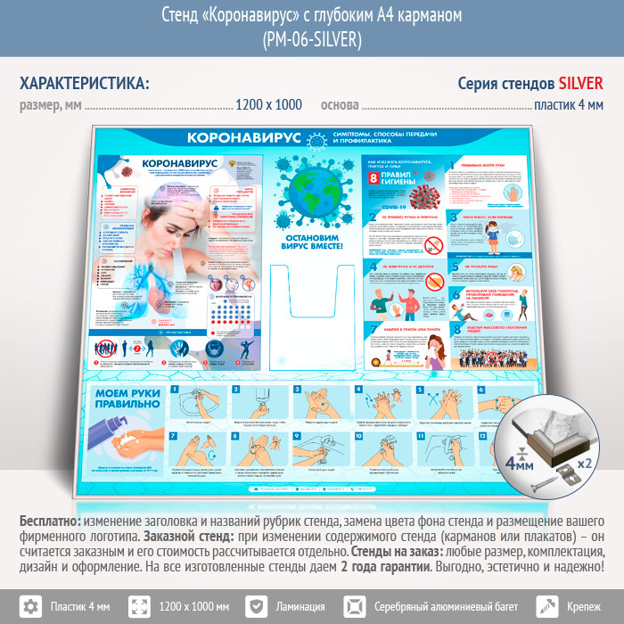Стенд «Коронавирус» с глубоким А4 карманом (PM-06-SILVER) в Великом Новгороде купить