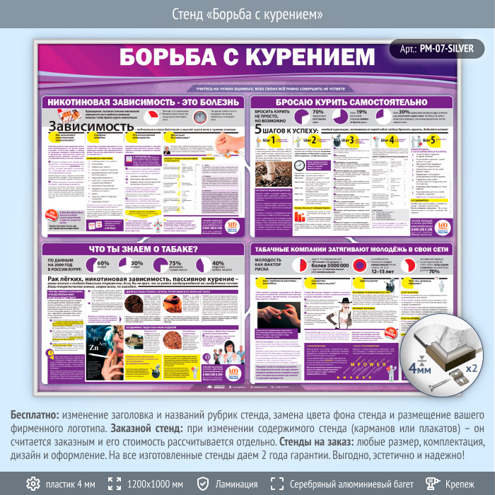 Стенд «Борьба с курением» (PM-07-SILVER) в Великом Новгороде купить