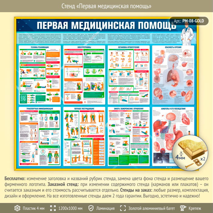 Стенд «Первая медицинская помощь» (PM-08-GOLD) в Великом Новгороде купить
