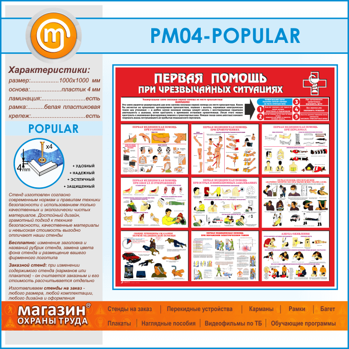 Стенд «Первая помощь при чрезвычайных ситуациях» (PM-04-POPULAR) в Великом Новгороде купить