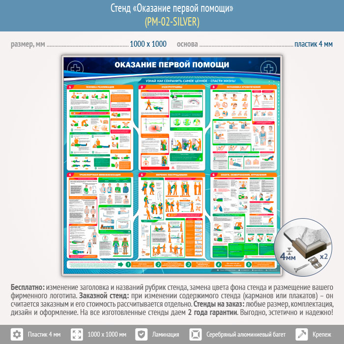 Стенд «Оказание первой помощи» (PM-02-SILVER) в Великом Новгороде купить
