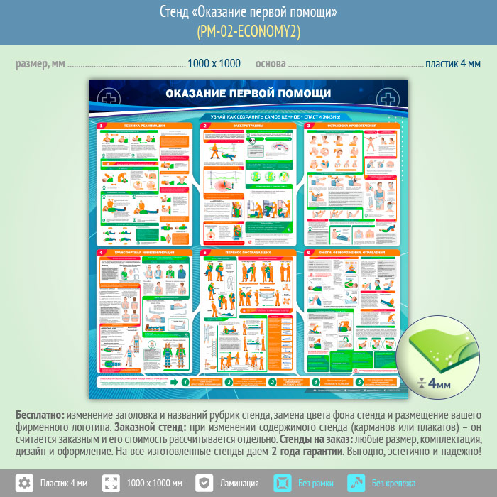 Стенд «Оказание первой помощи» (PM-02-ECONOMY2) в Великом Новгороде купить