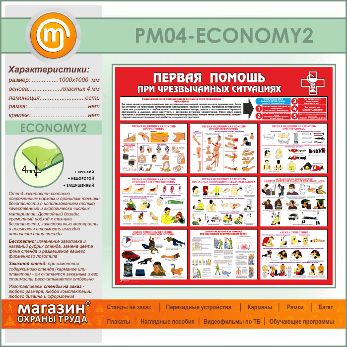 Стенд «Первая помощь при чрезвычайных ситуациях» (PM-04-ECONOMY2) в Великом Новгороде купить