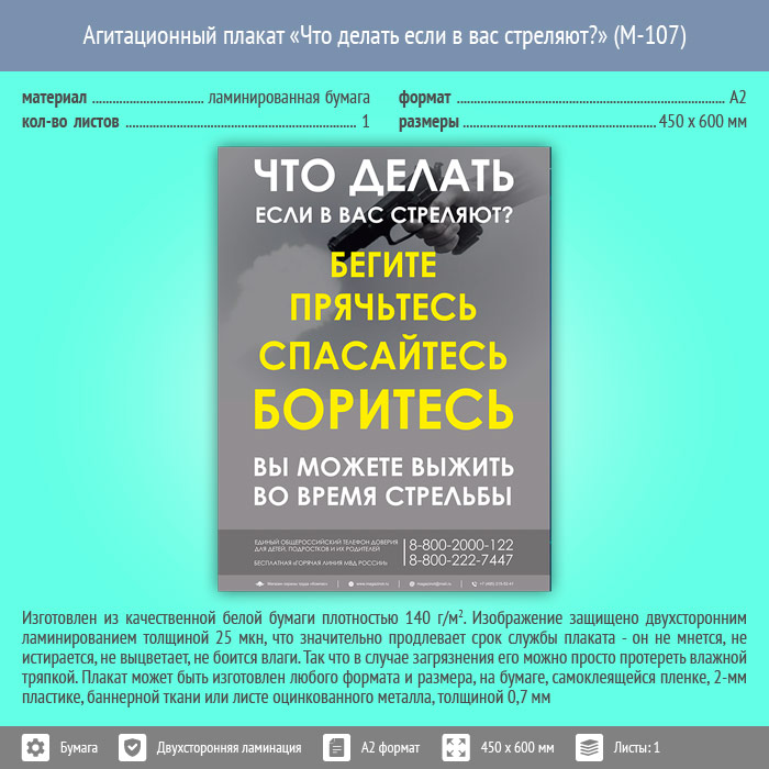 Плакат «Что делать если в вас стреляют?» (М-107, ламинированная бумага, А2, 1 лист) в Великом Новгороде купить