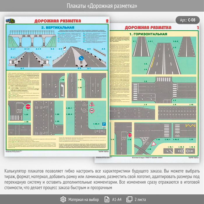 Плакаты «Дорожная разметка» (С-08, 2 листа)Плакаты «Дорожная разметка» (С-08, 2 листа)