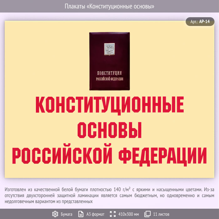 Плакаты «Конституционные основы» (АР-14, бумага, А3, 11 листов) в Великом Новгороде купить