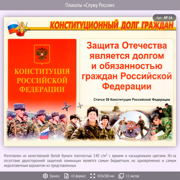 Плакаты «Служу России» (АР-16, бумага, А3, 11 листов) в Великом Новгороде купить