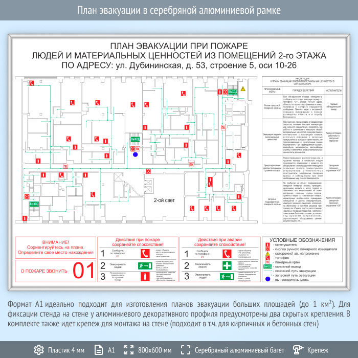 План эвакуации в серебряной алюминиевой рамке (А1 формат) в Великом Новгороде купить