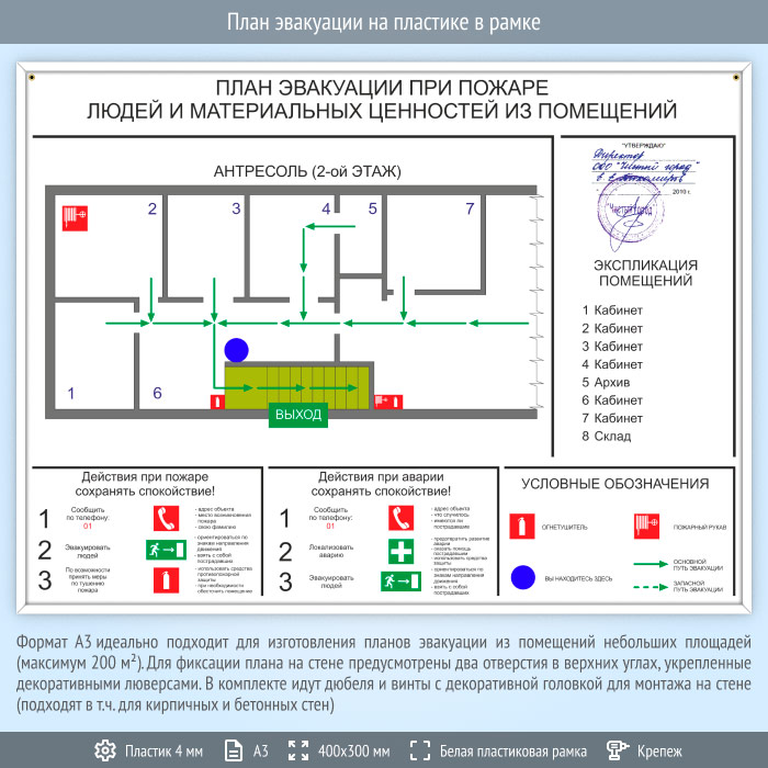 План эвакуации на пластике в рамке (А3 формат) в Великом Новгороде купить