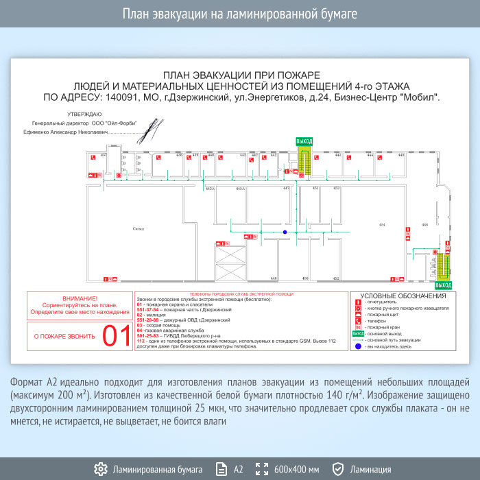 План эвакуации на ламинированной бумаге (А2 формат) в Великом Новгороде купить