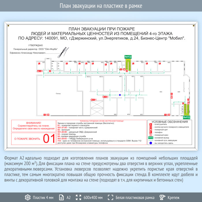 План эвакуации на пластике в рамке (А2 формат) в Великом Новгороде купить