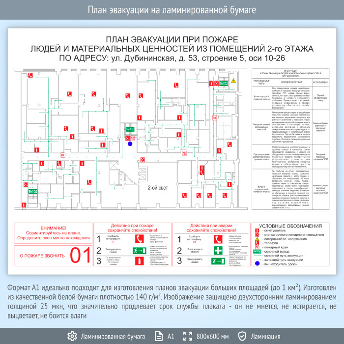 План эвакуации на ламинированной бумаге (А1 формат) в Великом Новгороде купить
