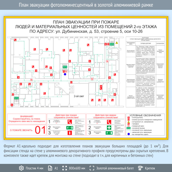 План эвакуации в золотой алюминиевой рамке (А1 формат) в Великом Новгороде купить