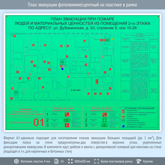 План эвакуации фотолюминесцентный на пластике в рамке (А1 формат) в Великом Новгороде купить