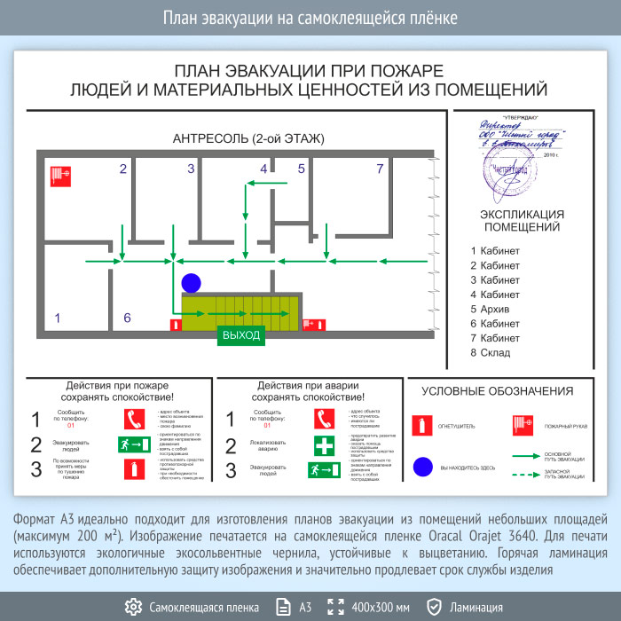 План эвакуации на самоклеящейся плёнке (А3 формат) в Великом Новгороде купить