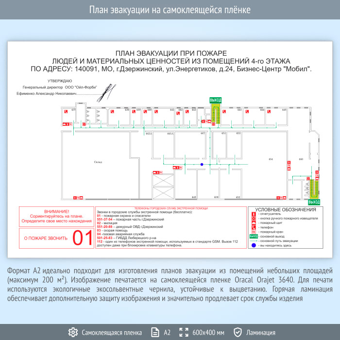 План эвакуации на самоклеящейся плёнке (А2 формат) в Великом Новгороде купить