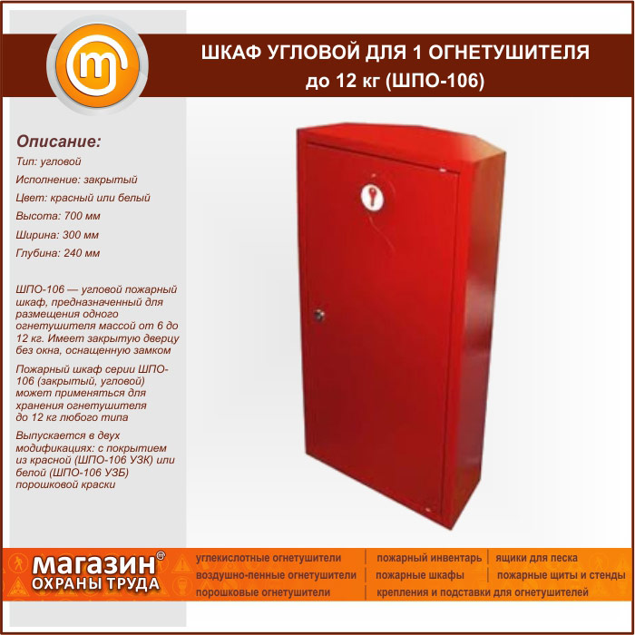 Шкаф пожарный ШПО-106 угловой для 1 огнетушителя до 12 кг в Великом Новгороде купить
