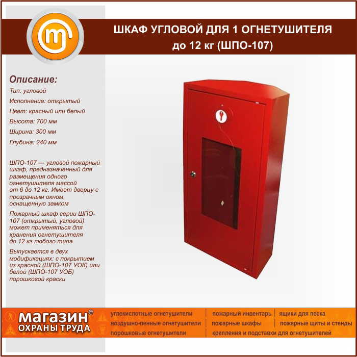 Шкаф пожарный ШПО-107 угловой для 1 огнетушителя до 12 кг в Великом Новгороде купить