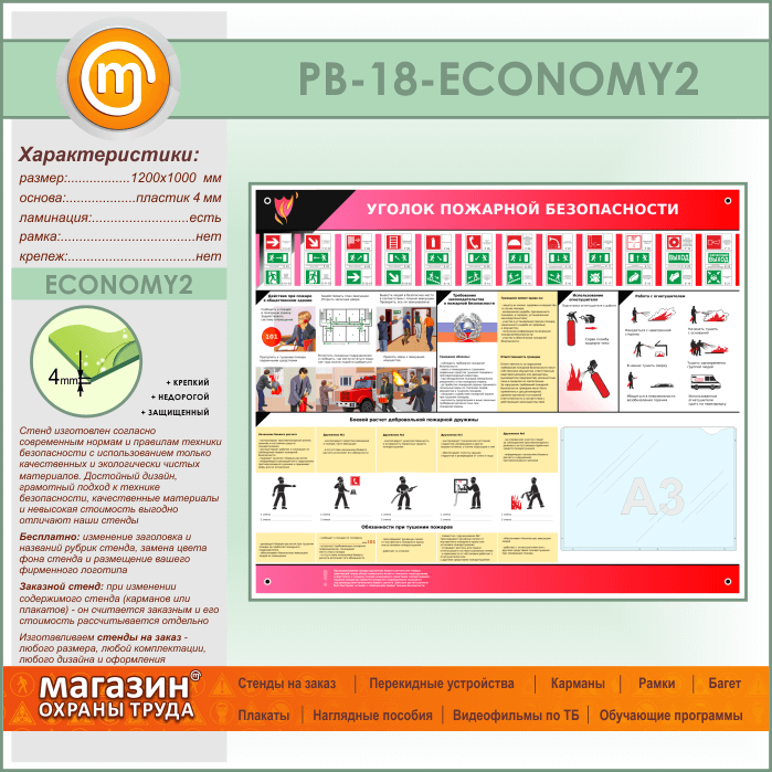 Стенд «Уголок пожарной безопасности» с карманом А3 формата (PB-18-ECONOMY2) в Великом Новгороде купить