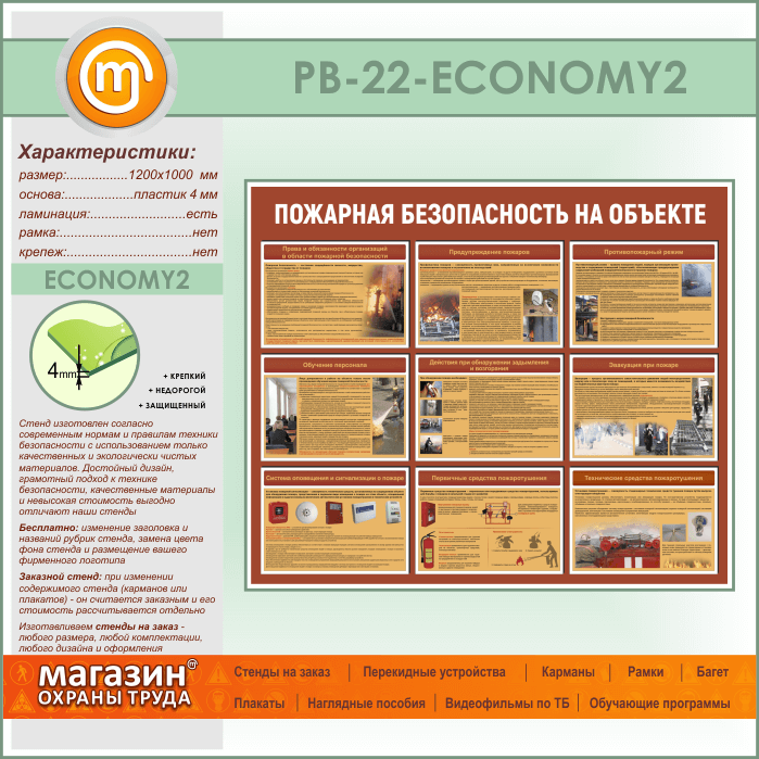 Стенд «Пожарная безопасность на объекте» (PB-22-ECONOMY2) в Великом Новгороде купить