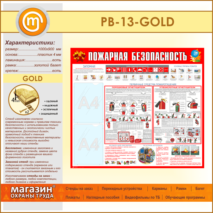 Стенд «Пожарная безопасность» с 2 карманами (PB-13-GOLD) в Великом Новгороде купить