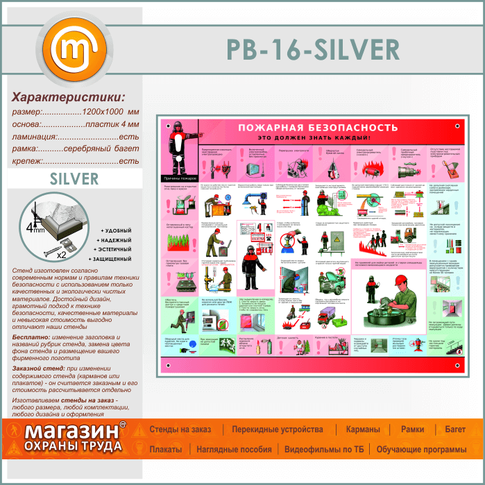 Стенд «Пожарная безопасность. Это должен знать каждый» (PB-16-SILVER) в Великом Новгороде купить