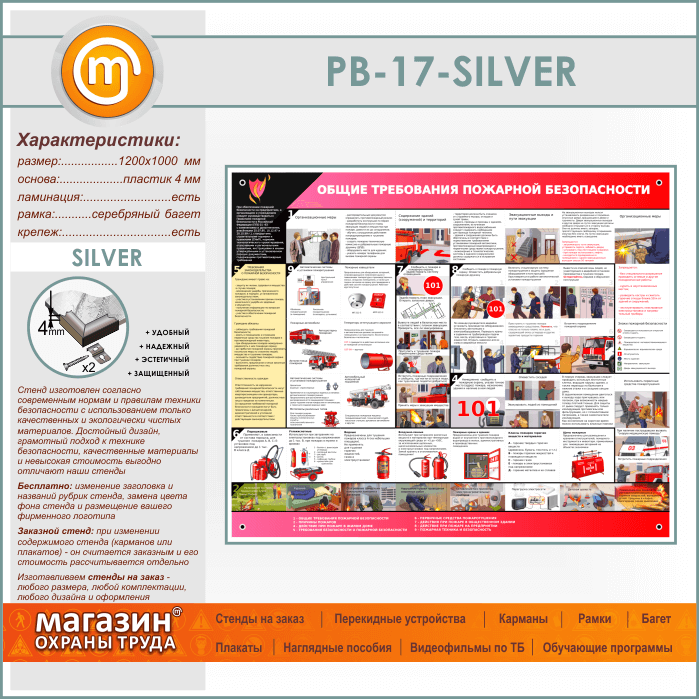 Стенд «Общие требования пожарной безопасности» (PB-17-SILVER) в Великом Новгороде купить